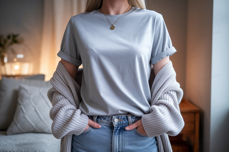 Similar Design Products to Light blue t shirt and grey cardigan mockup