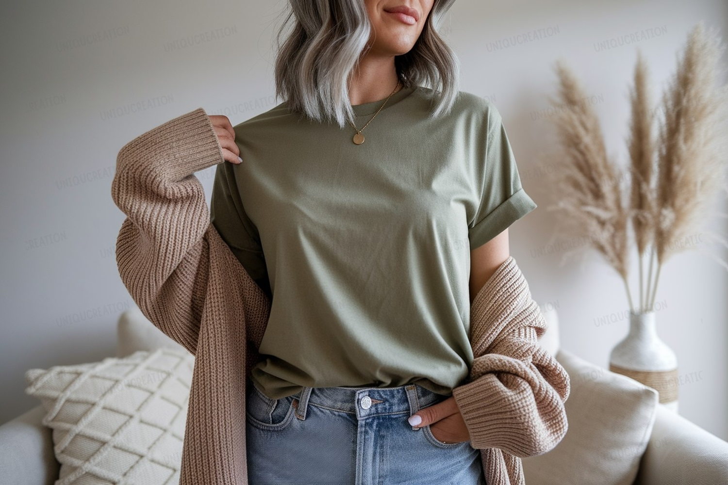 woman, man, female, male, person, fashion, clothing, apparel, casual, style, outfit, modern, chic, elegant, trendy, aesthetic, cozy, comfortable, soft, textured, knitwear, sweater, cardigan, knit, layered, cotton, fabric, stylish, everyday, relaxed, lifestyle, indoor, home, natural, light, shadows, studio, portrait, mockup, display, product, presentation, garment, simple, clean, neutral, background, upper body, torso, model, photo, image, picture, aesthetic, interior, decor, couch, pillows, vase, reeds, room