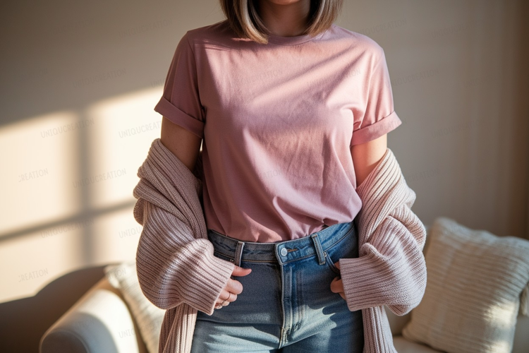 Fashion Shirt Pink Clothing Casual Mockup Apparel Blue Jeans Cardigan
