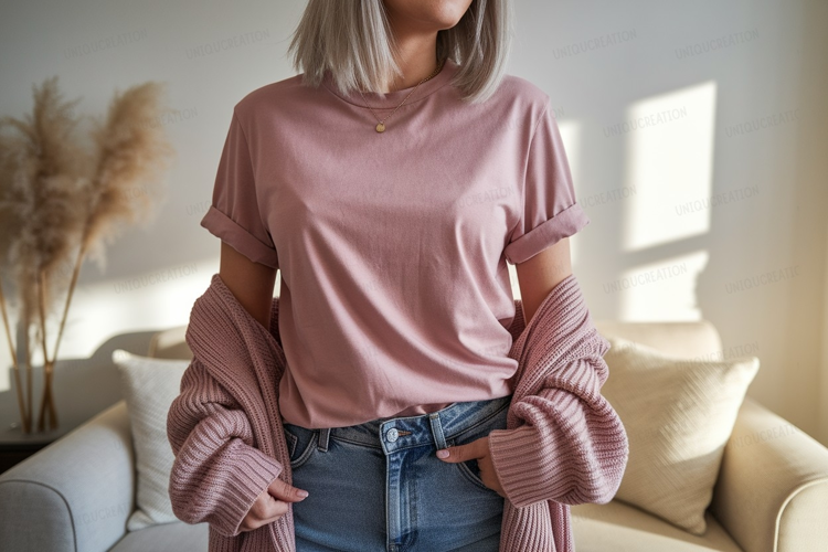 Similar Design Products to Pink shirt and cardigan mockup woman