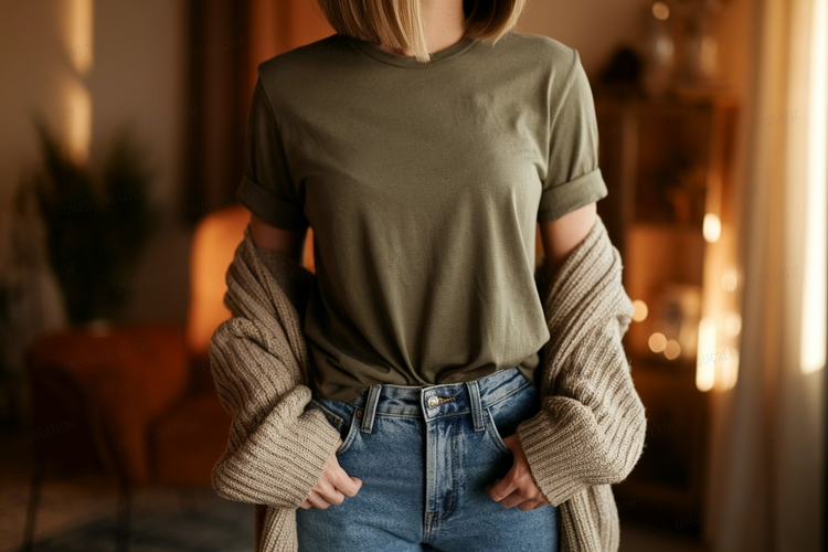 Similar Design Products to Green t shirt blue jeans cardigan image