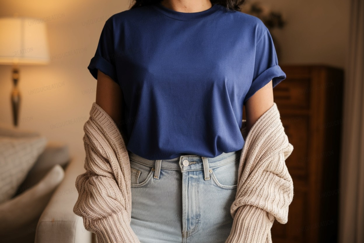 Similar Design Products to Blue T Shirt Light Jeans Cardigan Mockup