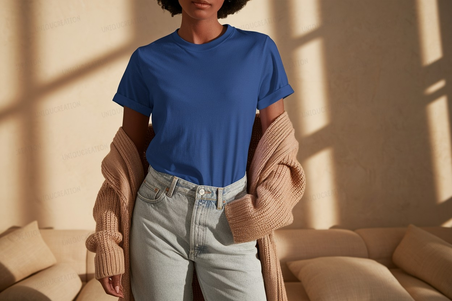 Similar Design Products to Blue t shirt mockup with cardigan image