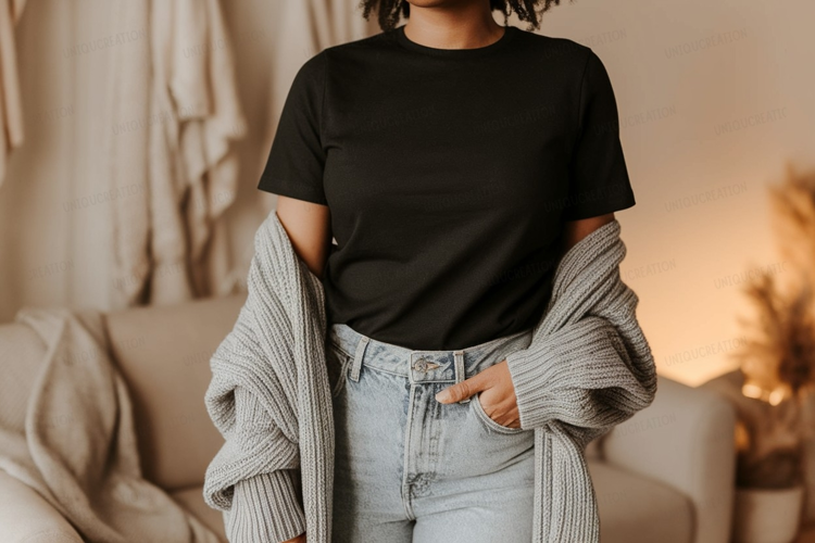 Similar Design Products to Black t shirt and denim jeans mockup image
