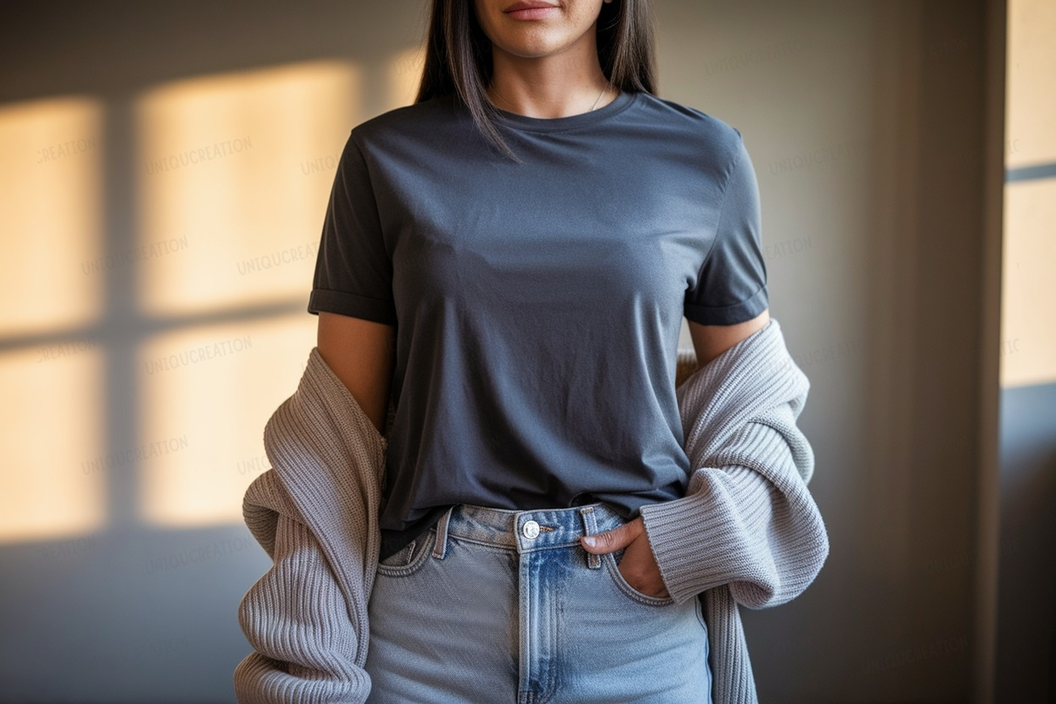 Fashion Shirt Clothing Casual Mockup Blue Jeans Grey T Cardigan
