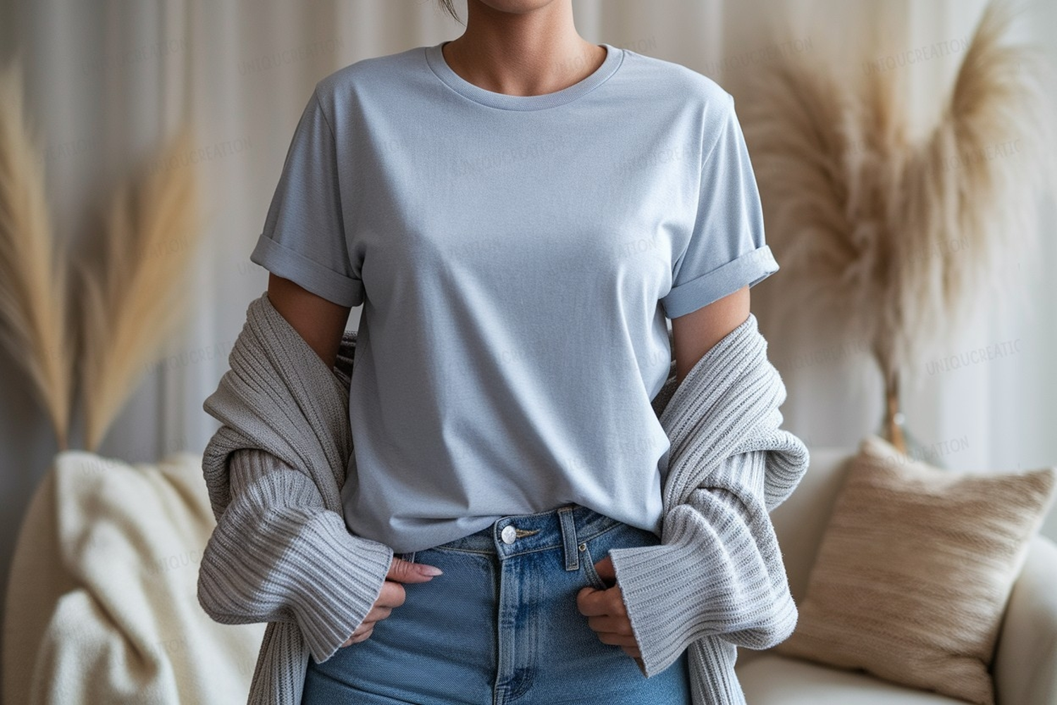 Light Fashion Shirt Clothing Casual Mockup Apparel Blue Female T