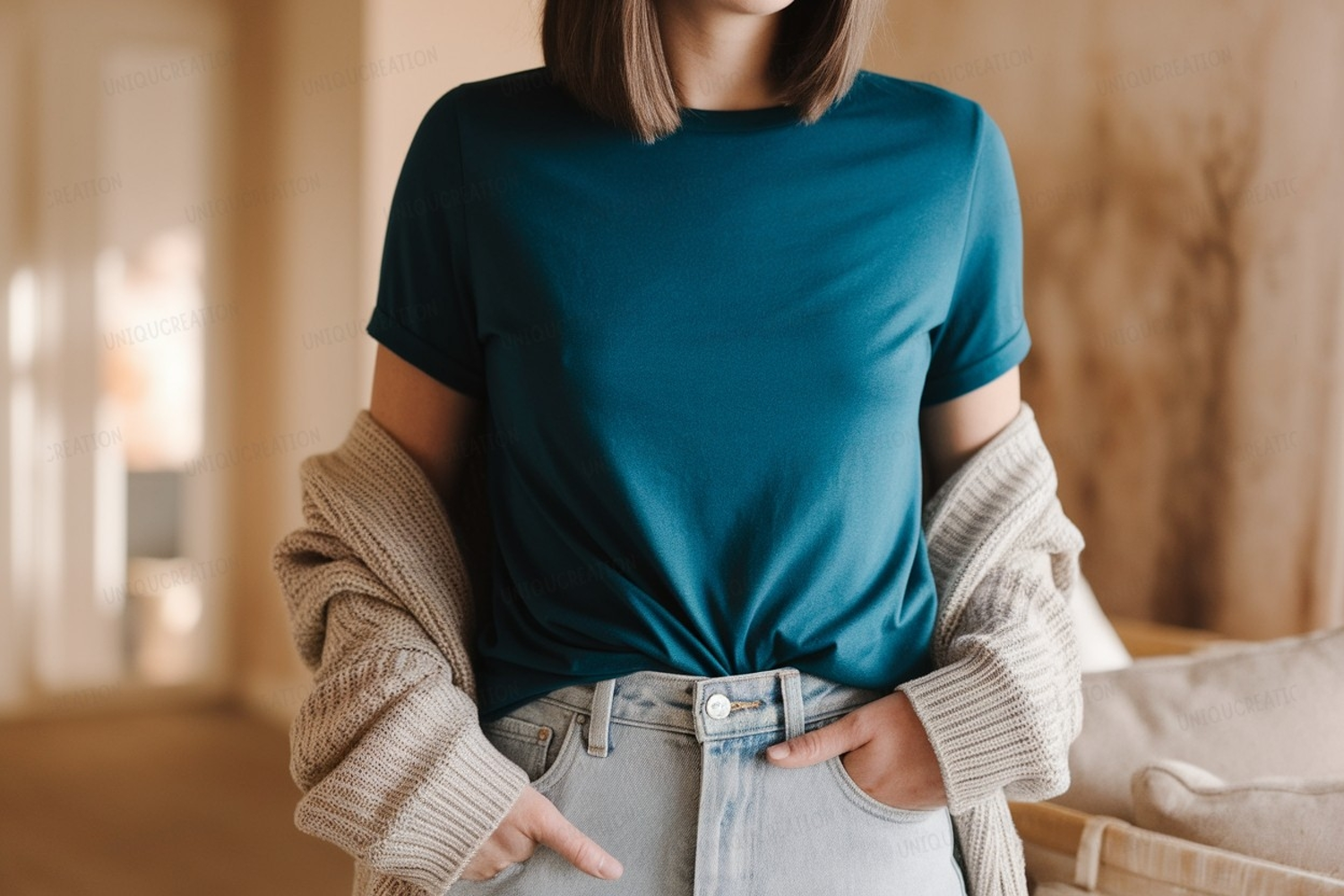 Similar Design Products to Teal shirt light jeans knit cardigan