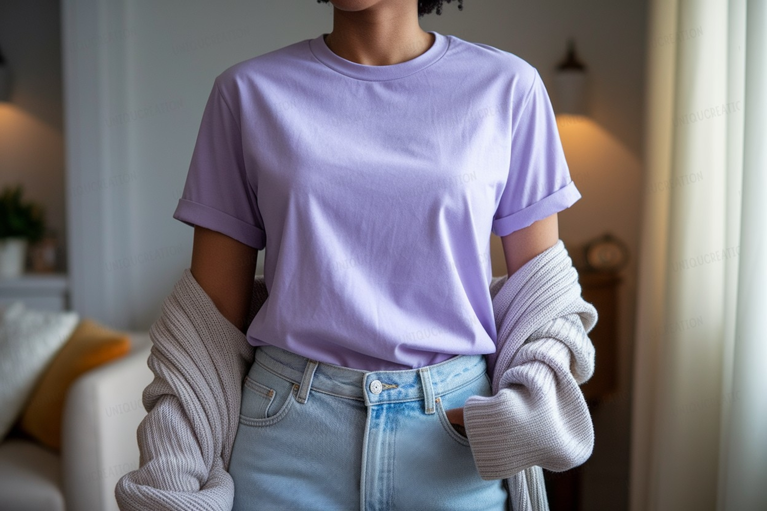 Similar Design Products to Lavender tee light denim jeans grey cardigan image