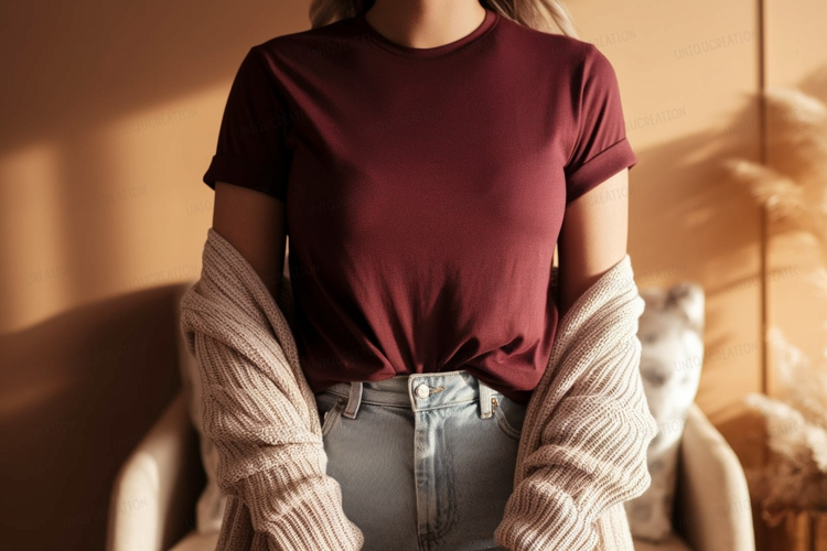 Similar Design Products to Maroon t shirt light jeans knit cardigan image