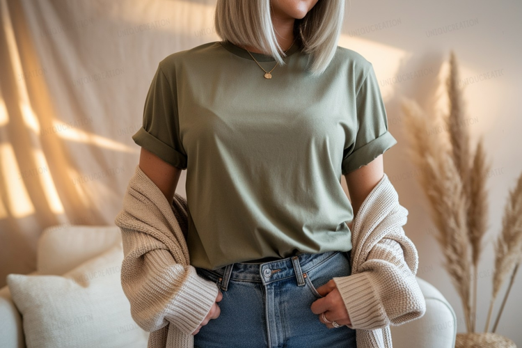 Similar Design Products to Olive tee denim jeans cardigan mockup apparel