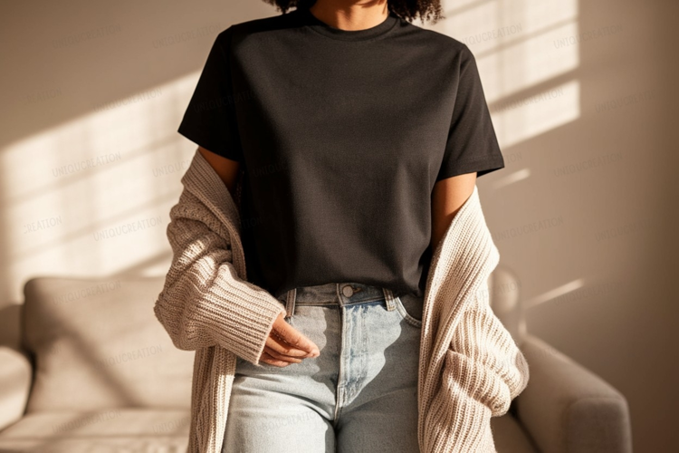 Similar Design Products to Black T Shirt Mockup With Cardigan image