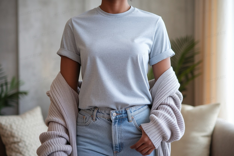 Similar Design Products to Light blue t shirt and grey cardigan mockup image