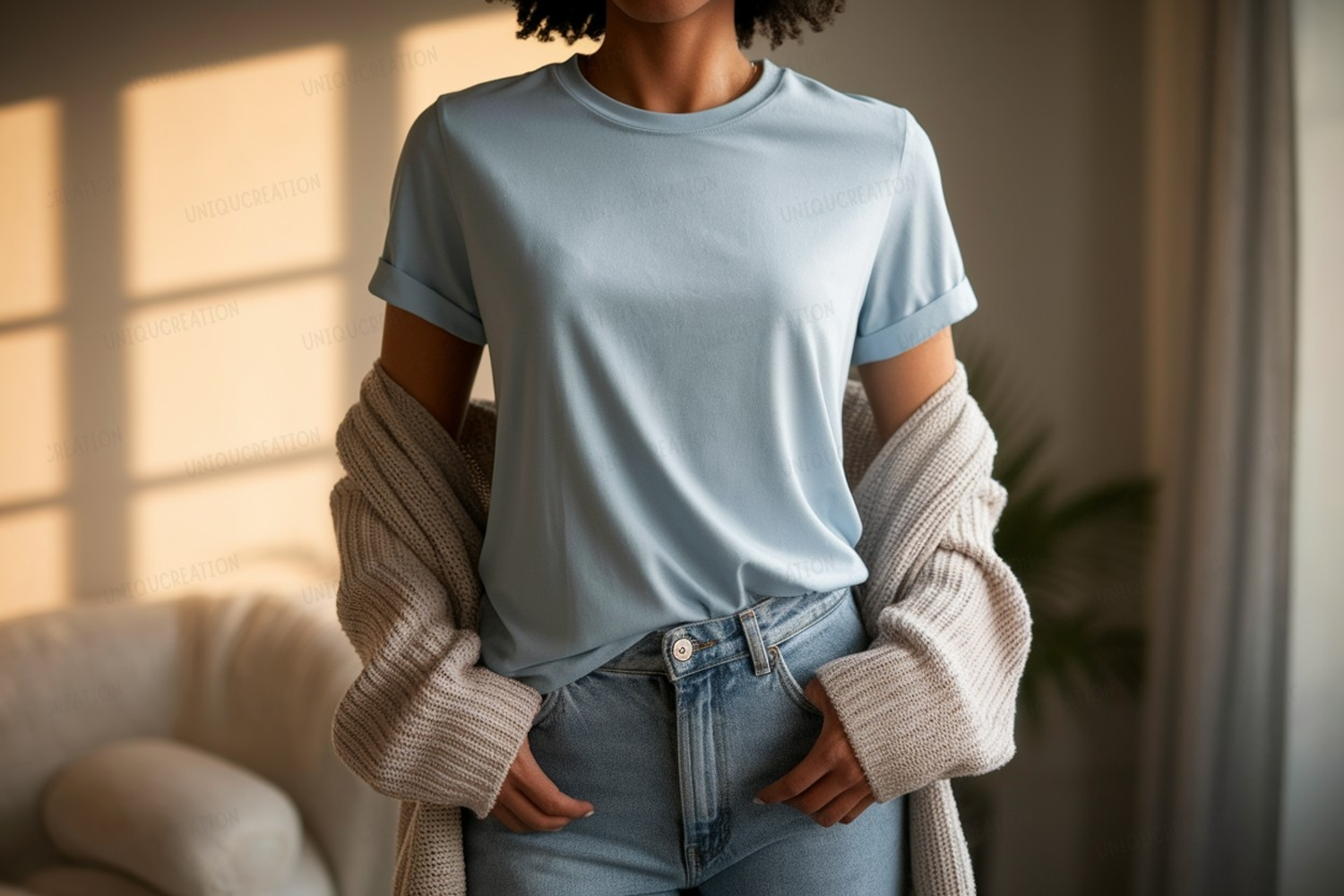 Similar Design Products to Light blue t shirt and denim jeans mockup image
