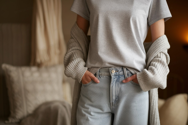 Similar Design Products to Casual grey t shirt light denim jeans mockup image