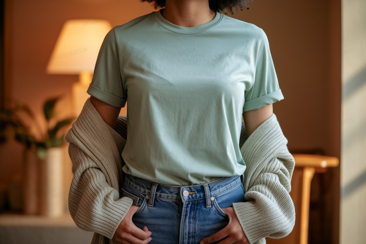 Fashion Shirt Clothing Casual Green Mockup Apparel Jeans Denim T