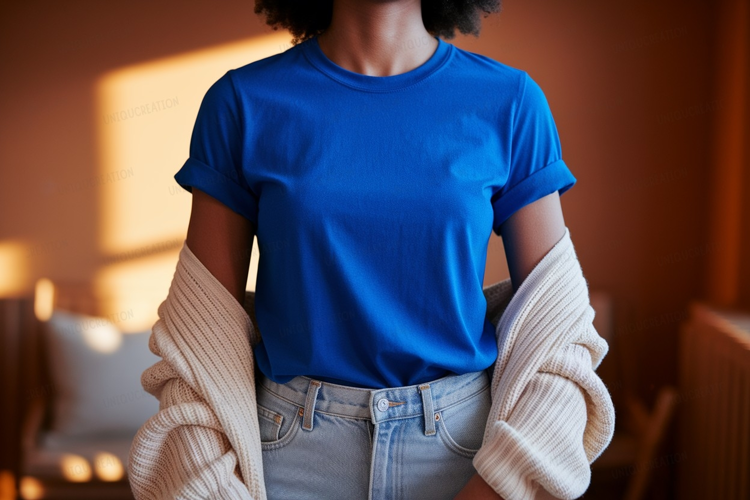 Similar Design Products to Woman wearing blue t shirt and cardigan image