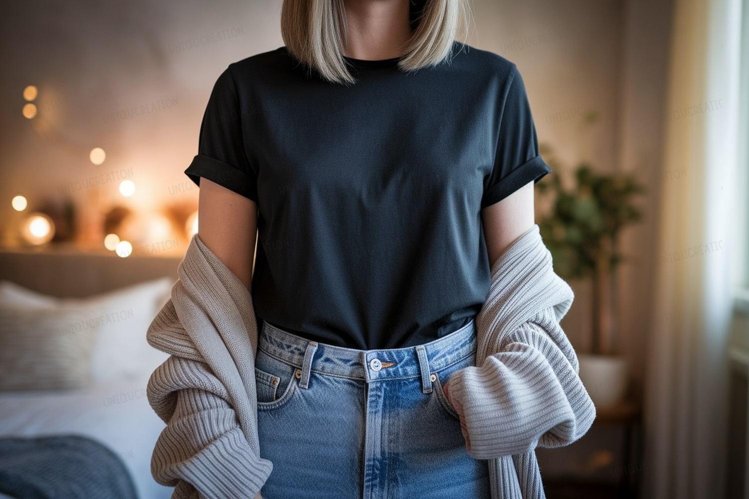Similar Design Products to Woman wearing black t shirt and jeans image