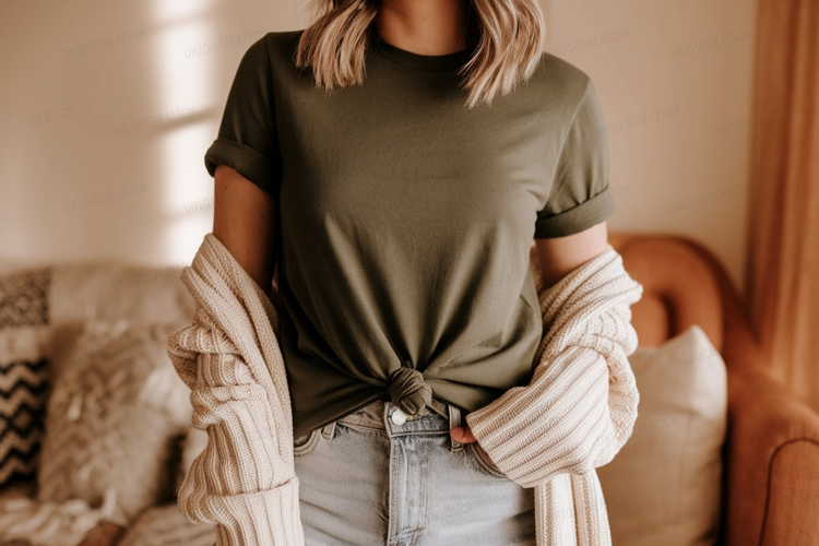 Fashion Style Shirt Clothing Casual Green Mockup Apparel Olive T