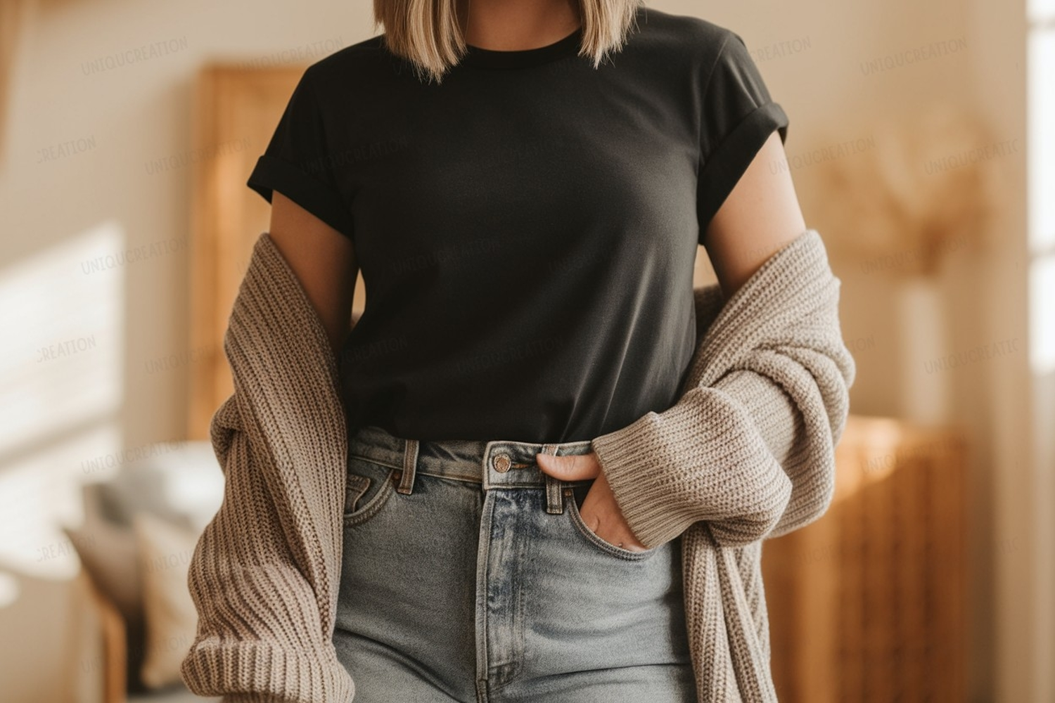 Fashion Black Shirt Clothing Casual Mockup Apparel Jeans Denim T