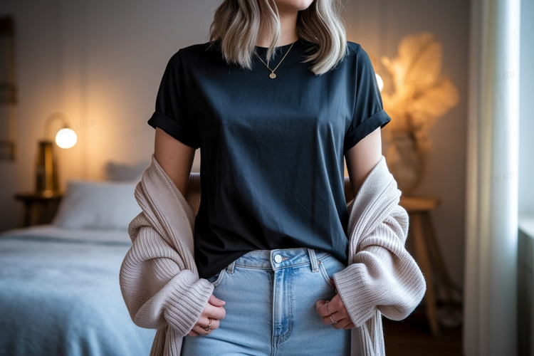Tags: woman, man, female, male, person, fashion, clothing, apparel, casual, style, outfit, modern, chic, elegant, trendy, aesthetic, cozy, comfortable, soft, textured, knitwear, sweater, cardigan, knit, layered, cotton, fabric, stylish, everyday, relaxed, lifestyle, indoor, home, natural, light, shadows, studio, portrait, mockup, display, product, presentation, garment, simple, clean, neutral, background, upper body, torso, model, photo, image, picture, aesthetic, interior, decor, couch, pillows, vase, reeds, room