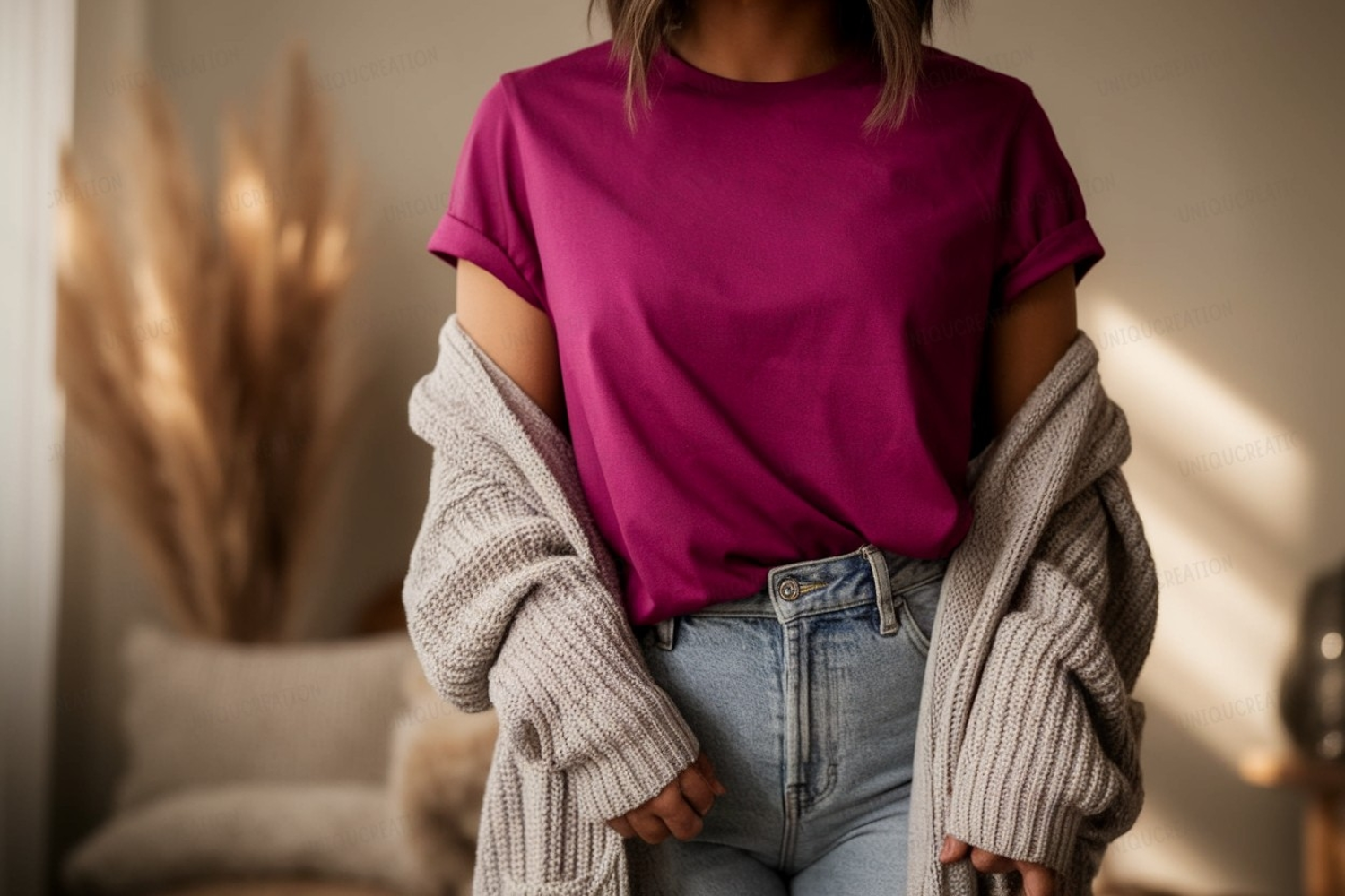 Similar Design Products to Magenta T Shirt Gray Cardigan Denim Jeans