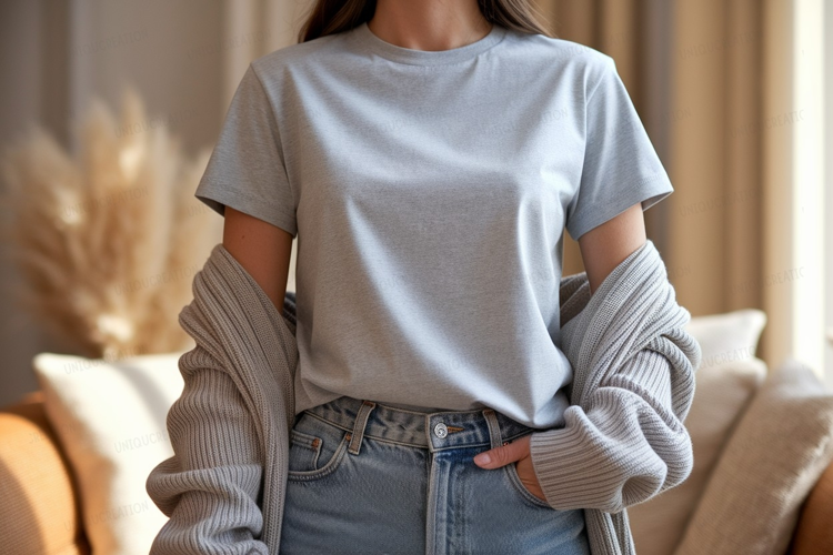 Similar Design Products to Light grey t shirt and cardigan mockup denim