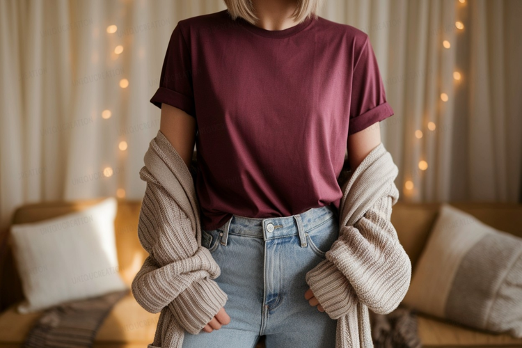Similar Design Products to Maroon t shirt and cardigan mockup image