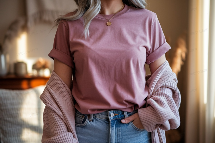 Fashion Style T-shirt Pink Clothing Casual Mockup Apparel Woman Jeans