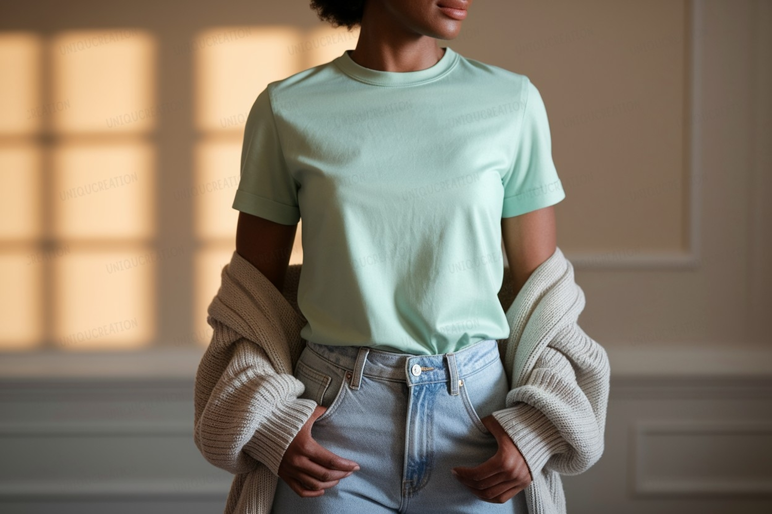 Light Fashion Shirt Clothing Casual Green Mockup Jeans Denim T