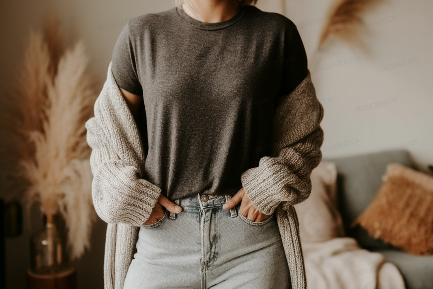 Similar Design Products to Grey tee and cardigan mockup apparel