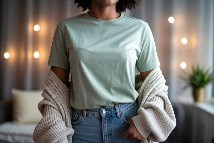 Similar Design Products to Light green t shirt and blue jeans mockup image