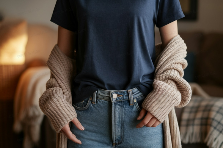 Tags: woman, man, female, male, person, fashion, clothing, apparel, casual, style, outfit, modern, chic, elegant, trendy, aesthetic, cozy, comfortable, soft, textured, knitwear, sweater, cardigan, knit, layered, cotton, fabric, stylish, everyday, relaxed, lifestyle, indoor, home, natural, light, shadows, studio, portrait, mockup, display, product, presentation, garment, simple, clean, neutral, background, upper body, torso, model, photo, image, picture, aesthetic, interior, decor, couch, pillows, vase, reeds, room