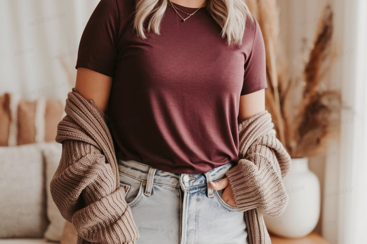 Similar Design Products to Maroon shirt light jeans cozy cardigan image
