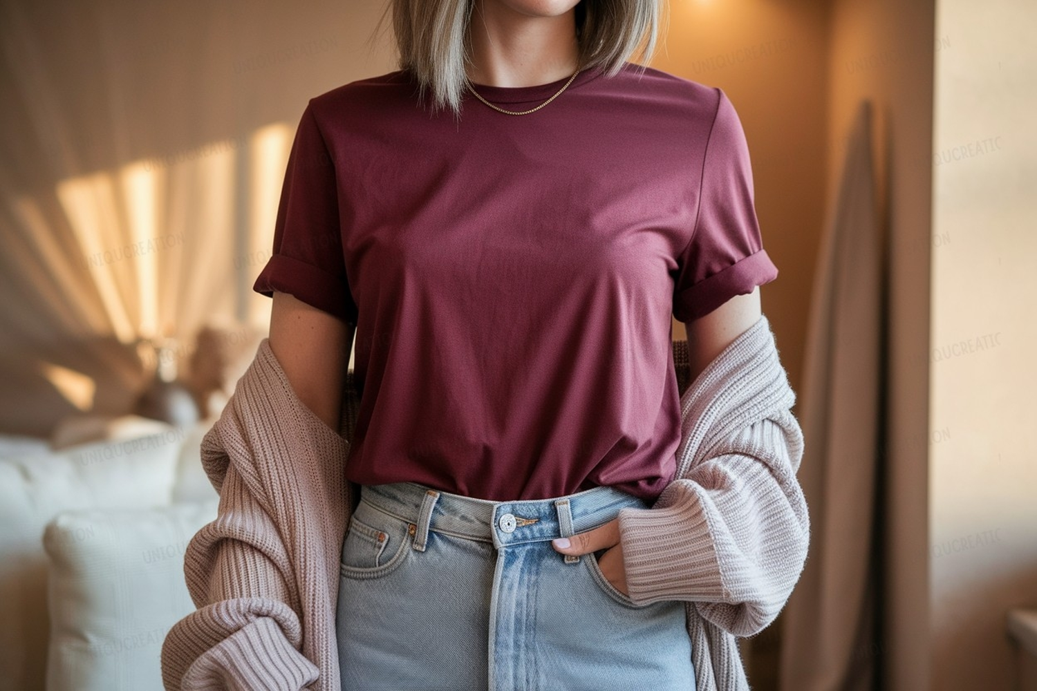 Similar Design Products to Maroon t shirt light cardigan denim Mockup