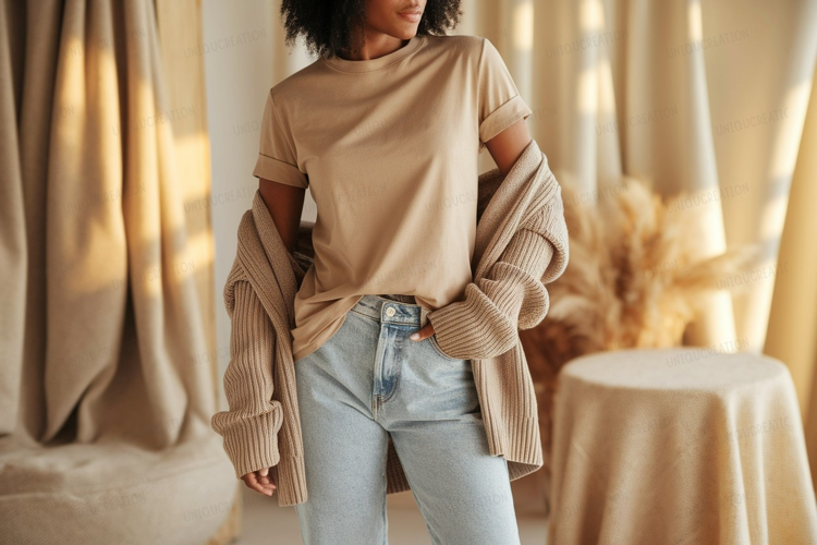 Fashion Style T-shirt Clothing Casual Mockup Woman Jeans Outfit Cardigan