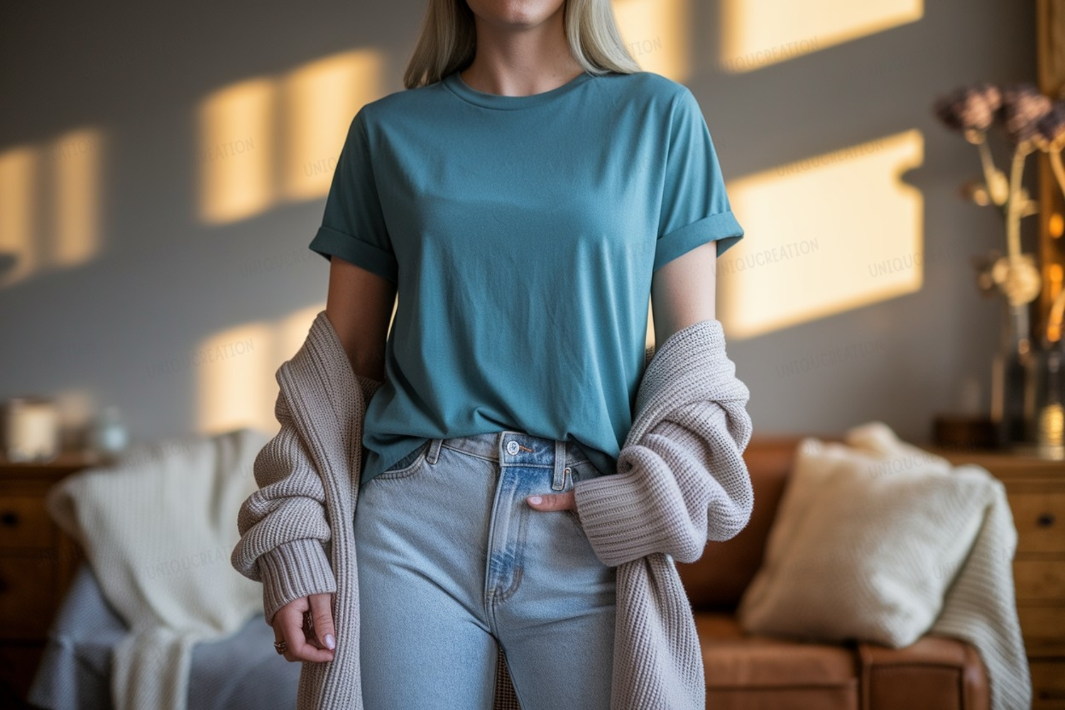 Tags: woman, man, female, male, person, fashion, clothing, apparel, casual, style, outfit, modern, chic, elegant, trendy, aesthetic, cozy, comfortable, soft, textured, knitwear, sweater, cardigan, knit, layered, cotton, fabric, stylish, everyday, relaxed, lifestyle, indoor, home, natural, light, shadows, studio, portrait, mockup, display, product, presentation, garment, simple, clean, neutral, background, upper body, torso, model, photo, image, picture, aesthetic, interior, decor, couch, pillows, vase, reeds, room