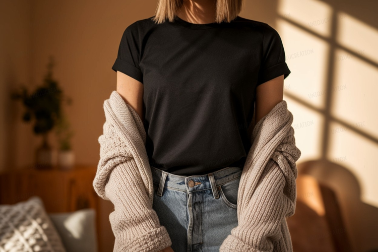 Similar Design Products to Black t shirt and beige cardigan mockup