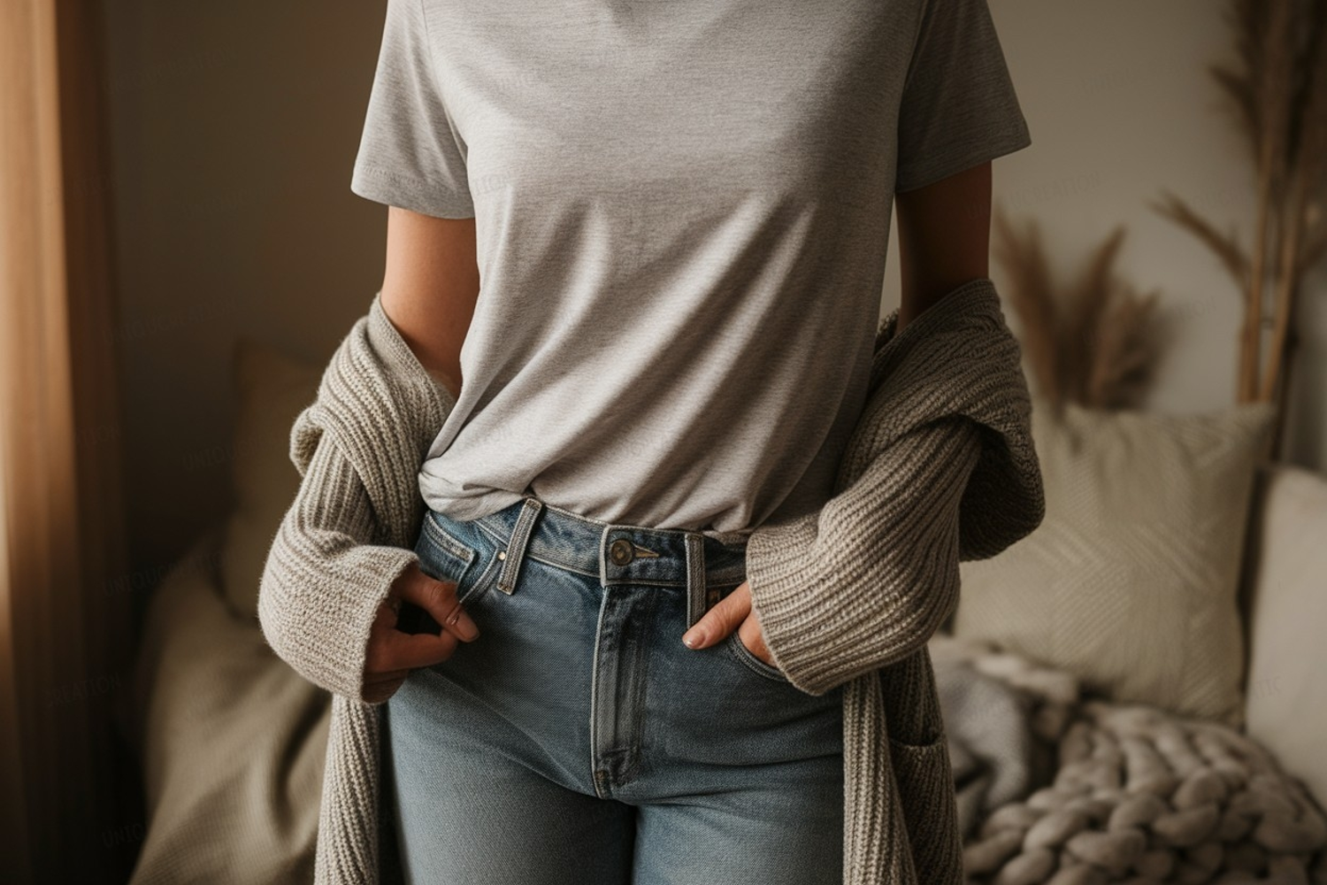 Fashion Style Clothing Casual Mockup Tee Jeans Grey Denim Outfit