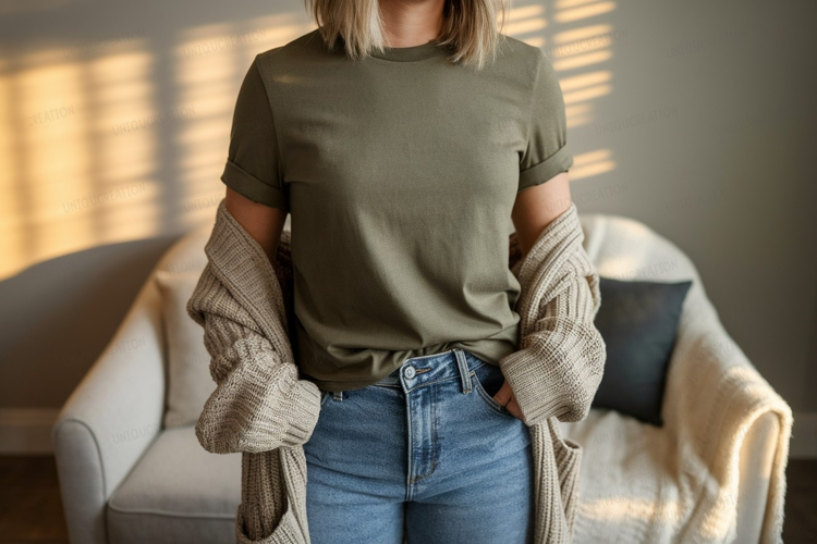 Olive tee and cardigan mockup apparel example image 1