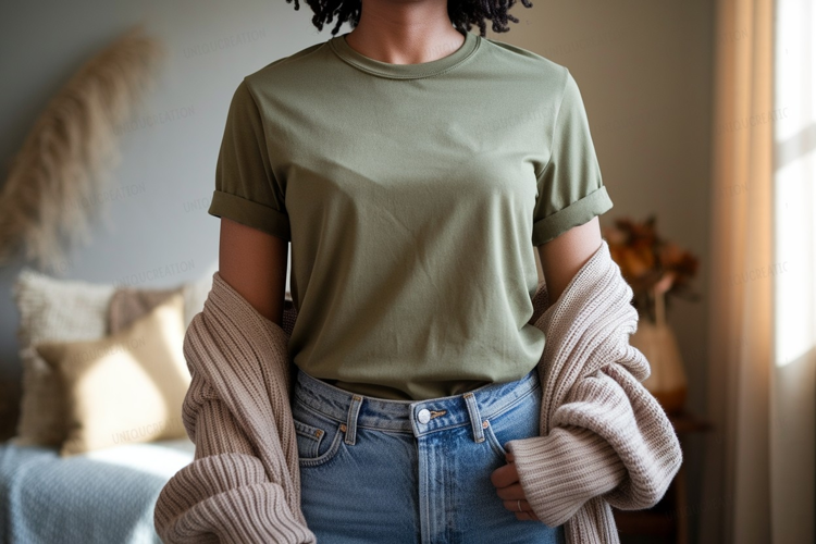 Similar Design Products to Olive green t shirt and denim jeans mockup image