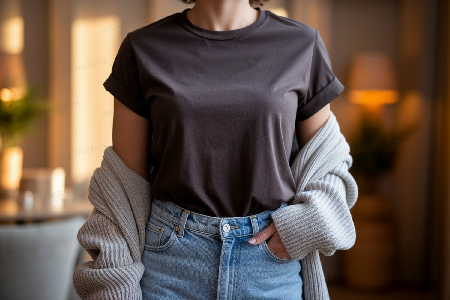 Fashion Shirt Clothing Casual Mockup Apparel Blue Jeans Grey T