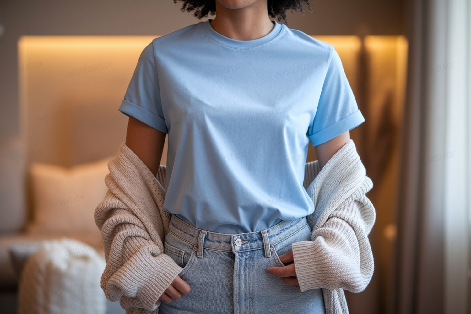 Similar Design Products to Blue t shirt mockup with cardigan image