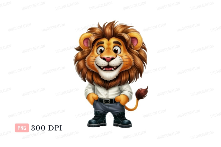 Cheerful cartoon lion wearing shirt pants boots character example image 1