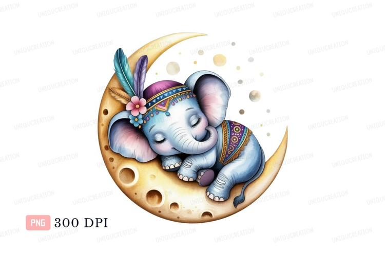 Similar Design Products to Sleeping baby elephant on crescent moon image