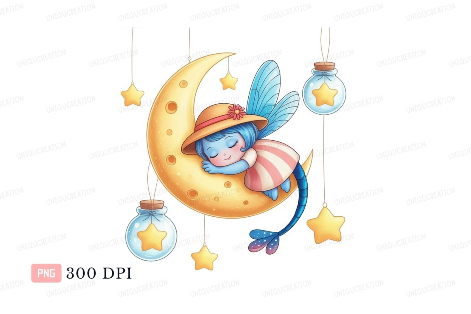 Sleeping fairy on moon with stars night example image 1