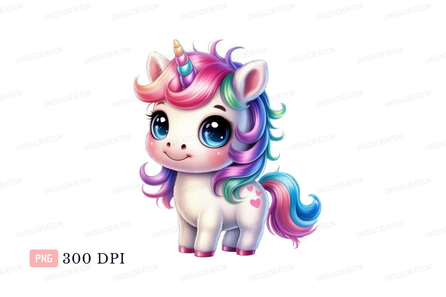 Adorable Unicorn With Rainbow Mane fantasy magical example image 1