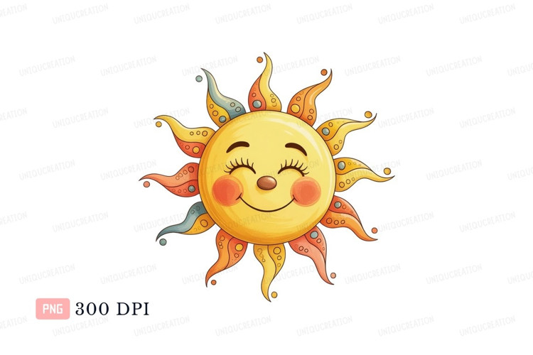Happy smiling sun with colorful rays cheerful yellow example image 1