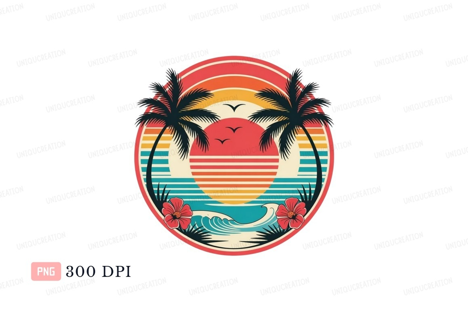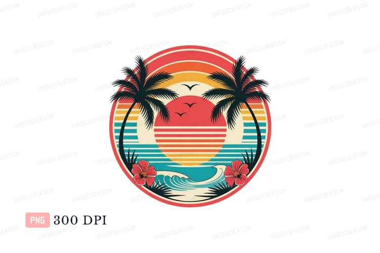 Sunset Palms Ocean Waves Floral Clipart P N G image example image 1