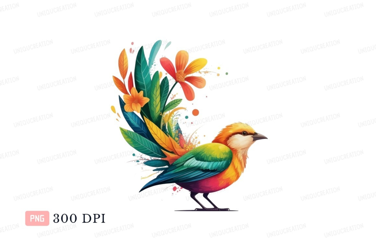 Colorful bird with vibrant foliage tropical flowers example image 1