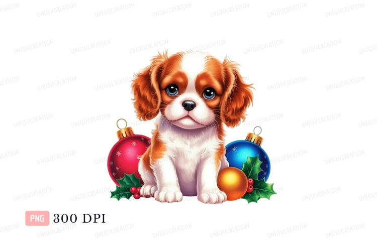 Adorable puppy with holiday ornaments cavalier king example image 1